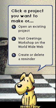 Leftover Microsoft Bob setup text inside of Microsoft Greetings Workshop 2.0.